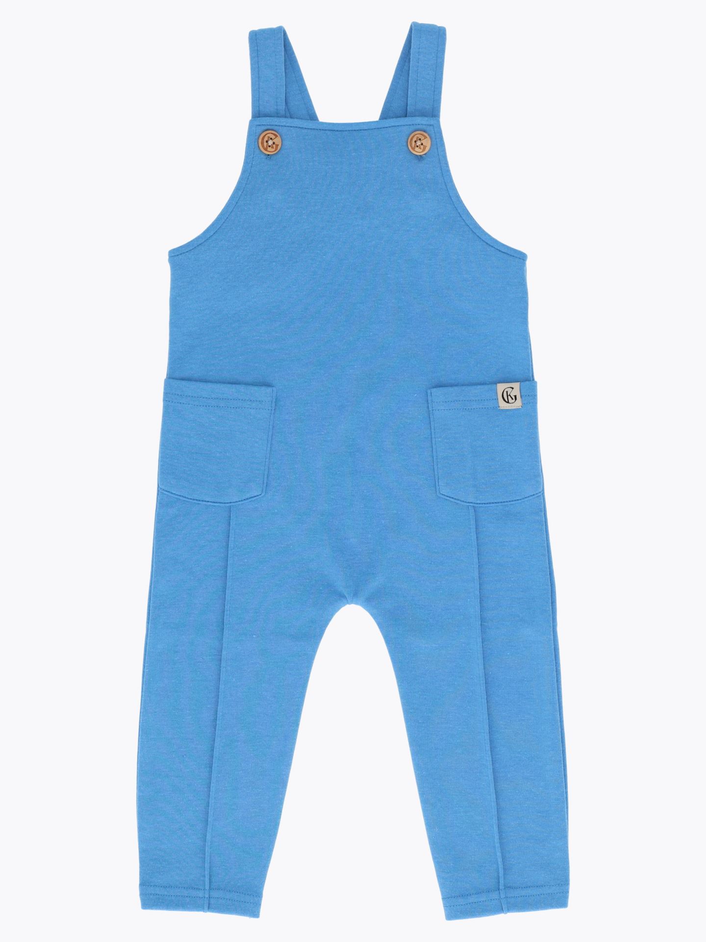 De justerbare selene med knapper sørger for en fleksibel passform som vokser med barnet. To søte lommer foran og en dekorativ søm langs bena gir buksen et sjarmerende preg.