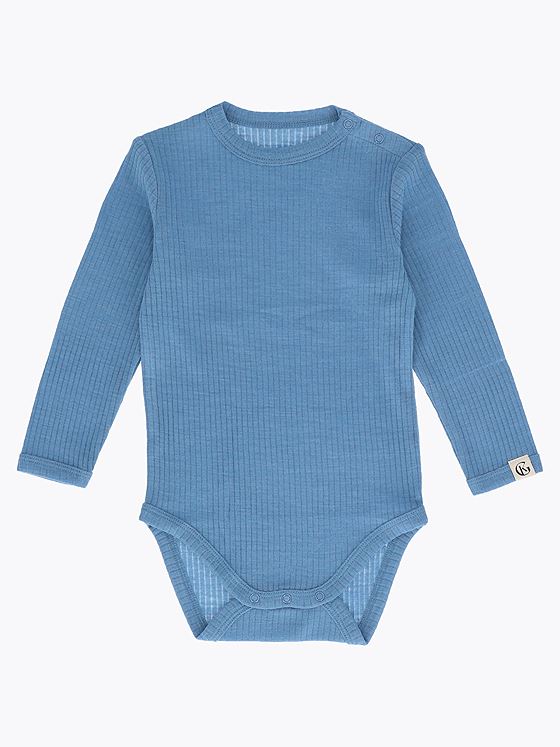 Dette er en myk ull body i en ribbet kvalitet som er super myk. Den har knepping på skuldrene for enkel lukking/åpning. Passer perfekt sammen med Chalk baby bukse for et komplett ullsett som babyen din kan kose seg i på kalde dager.