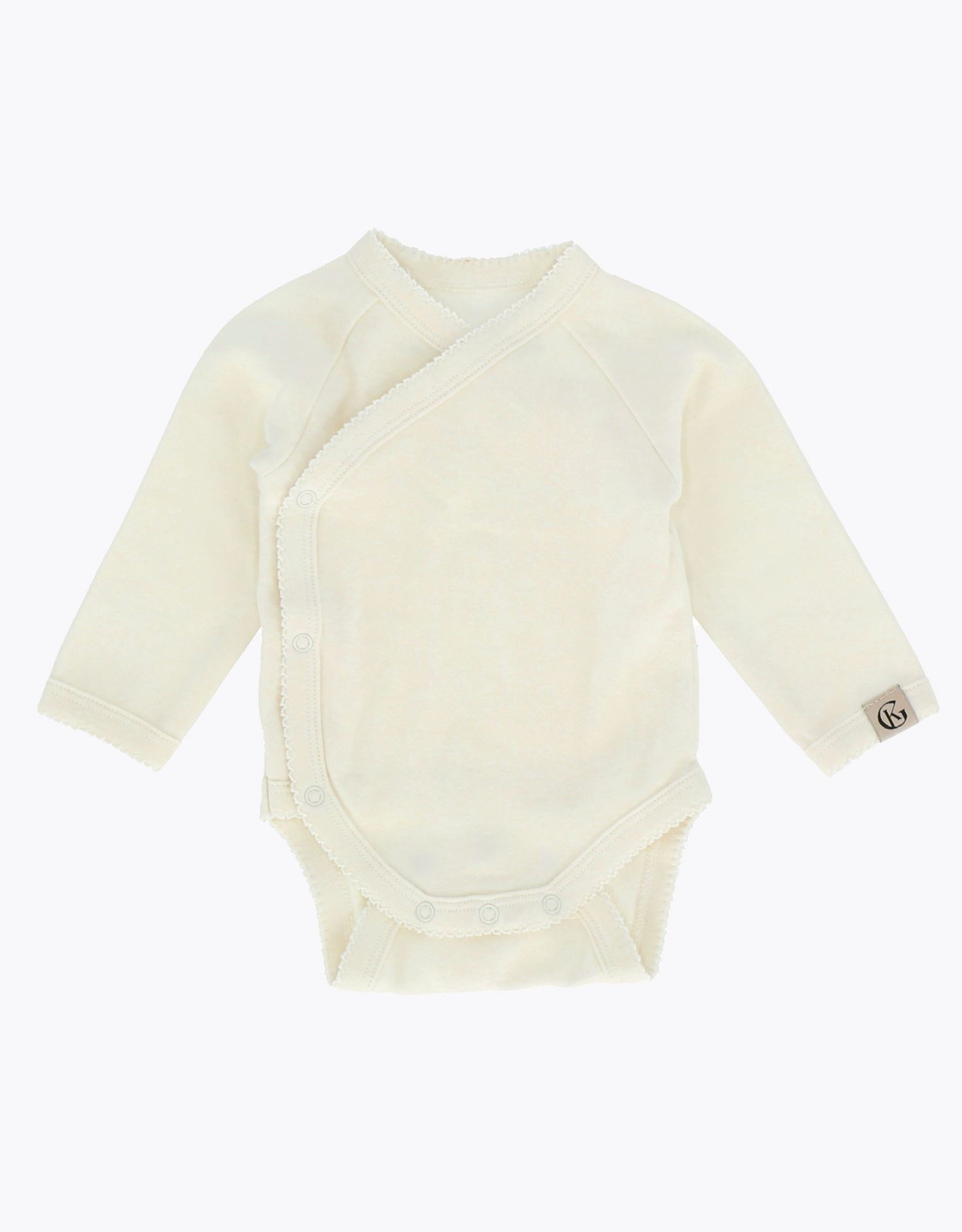 En nydelig omslagsbody for de aller minste, laget i en myk og pustende bomullskvalitet som føles behagelig mot sart babyhud. Det praktiske omslagsdesignet gjør påkledningen enkel og komfortabel, og kan forvandle skiftet på stellebordet til en kosestund for både baby og foreldre. De skjønne bølgekantene tilfører en delikat og sjarmerende detalj. Med sitt kjønnsnøytrale design passer den perfekt til alle små – en tidløs og praktisk babygave som vil bli satt pris på!