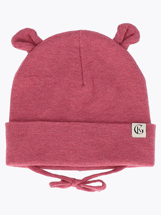 En supersøt lue til de minste med ører og knyting i en myk og deilig ullmiks.